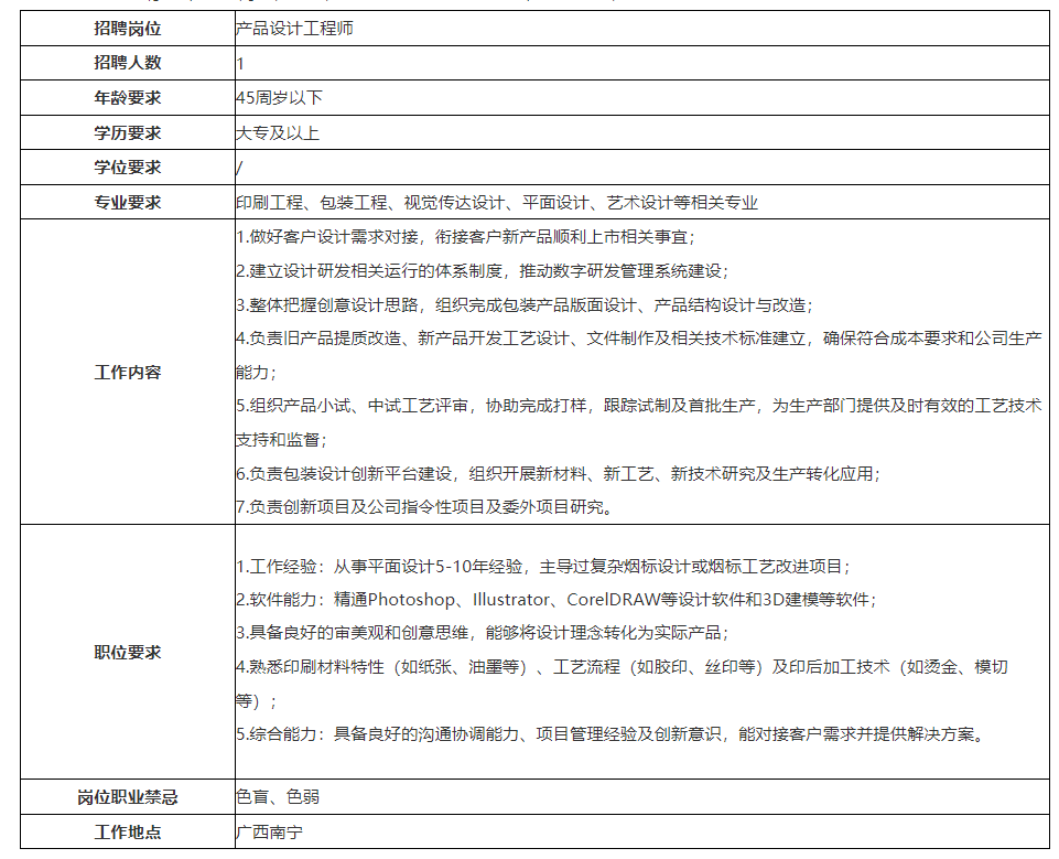 公司以創(chuàng)新引領發(fā)展,公司先后獲得“全國印刷示范企業(yè)”、“中國煙標印刷行業(yè)最具實力十大領軍企業(yè)”、“廣西制造業(yè)企業(yè)50強”,連續(xù)三年獲得“廣西優(yōu)秀企業(yè)”、“賀州市億元納稅企業(yè)”等榮譽稱號。公司秉承以人為本的理念,尊重人才、重視人才,開展員工職業(yè)發(fā)展規(guī)劃,為每一位員工提供廣闊的發(fā)展機會,充分發(fā)揮員工自主性和創(chuàng)造性。根據公司發(fā)展需要,現面向社會公開招聘員工。具體事項公告如下: