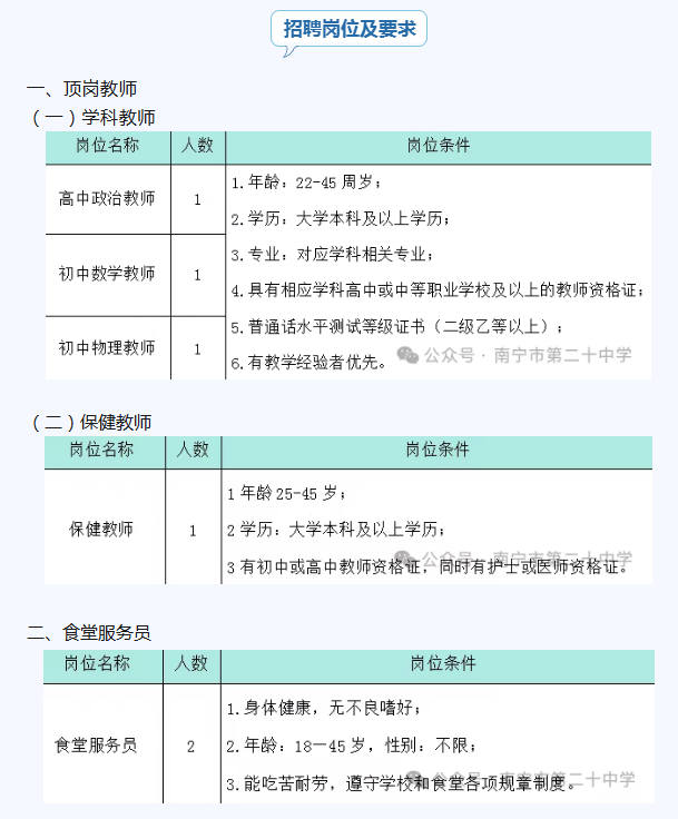 原文標題:南寧市第二十中學(xué)招聘啟事