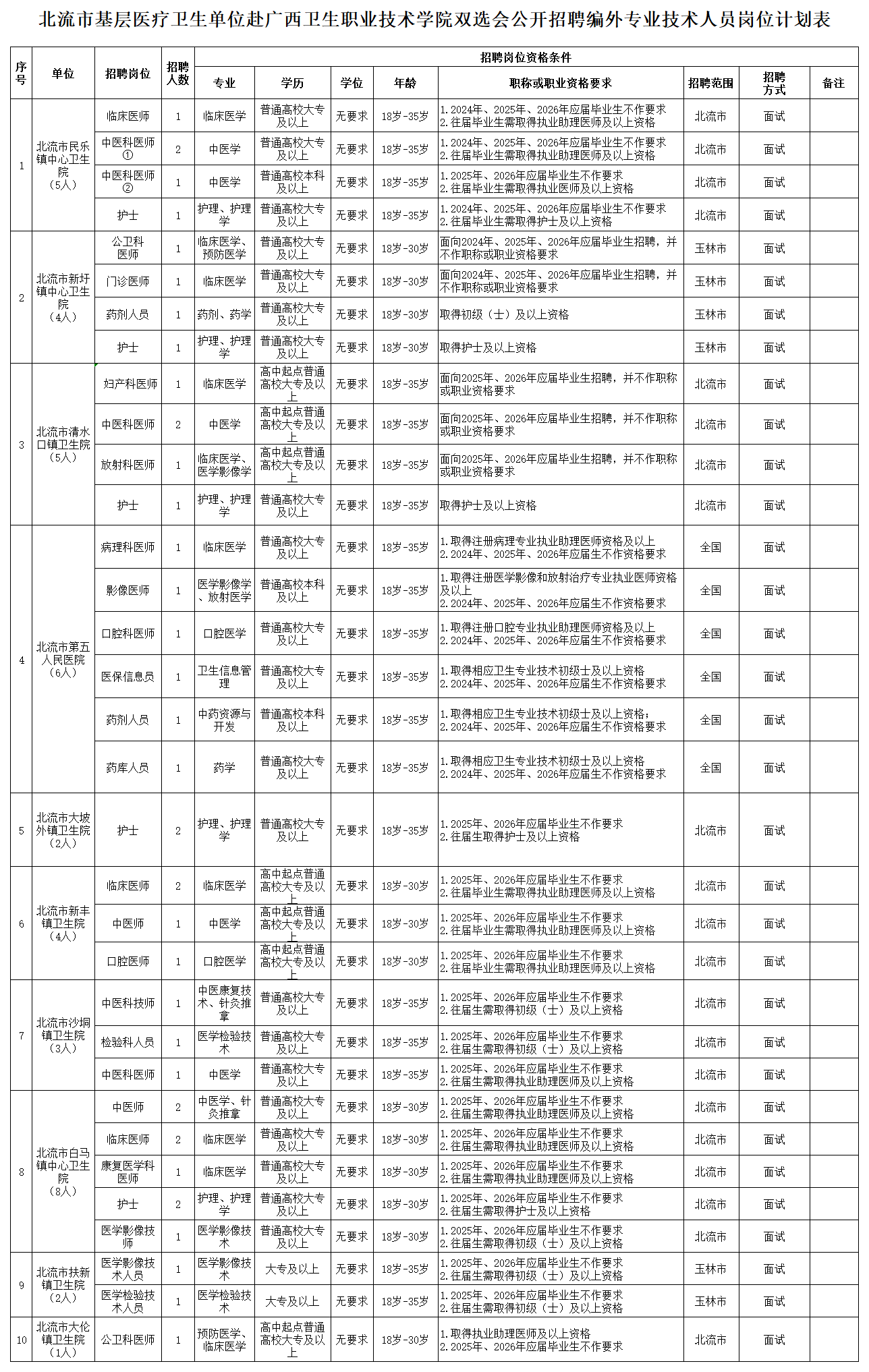 附件:1.北流市基層醫(yī)療衛(wèi)生單位赴廣西衛(wèi)生職業(yè)技術學院雙選會公開招聘編外專業(yè)技術人員崗位計劃表