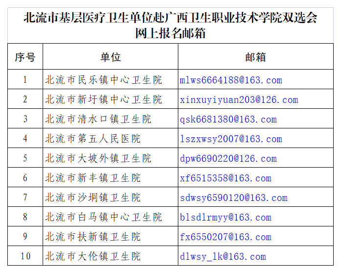 4.北流市基層醫(yī)療衛(wèi)生單位赴廣西衛(wèi)生職業(yè)技術學院雙選會網上報名郵箱
