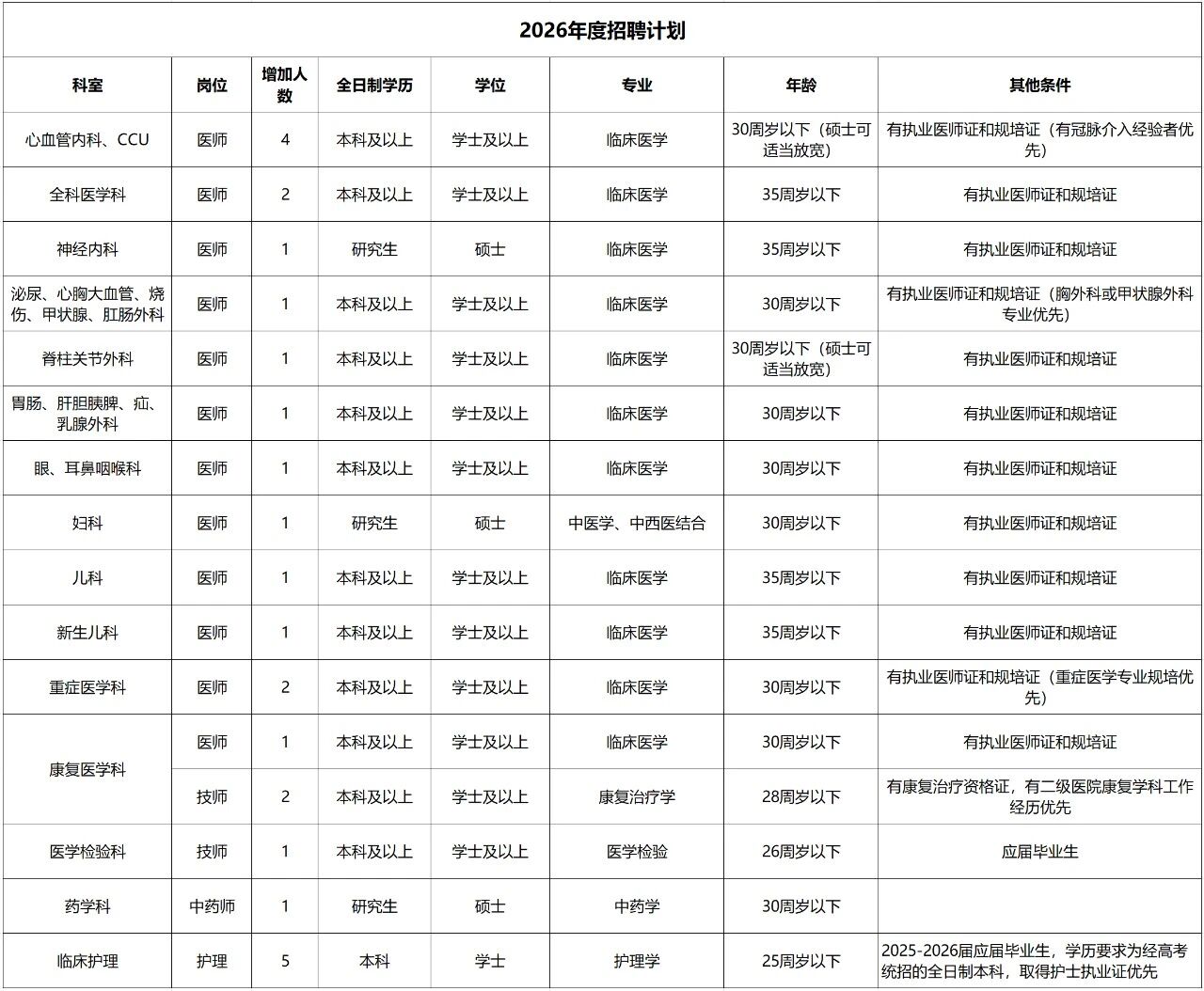 (二)醫(yī)院招聘的所有崗位均要求畢業(yè)時(shí)須同時(shí)取得應(yīng)聘崗位所需的學(xué)歷、學(xué)位證,緊缺崗位可放寬學(xué)位條件。同時(shí)須取得住院醫(yī)師規(guī)范化培訓(xùn)合格證書、醫(yī)師資格證書、醫(yī)師執(zhí)業(yè)證書。