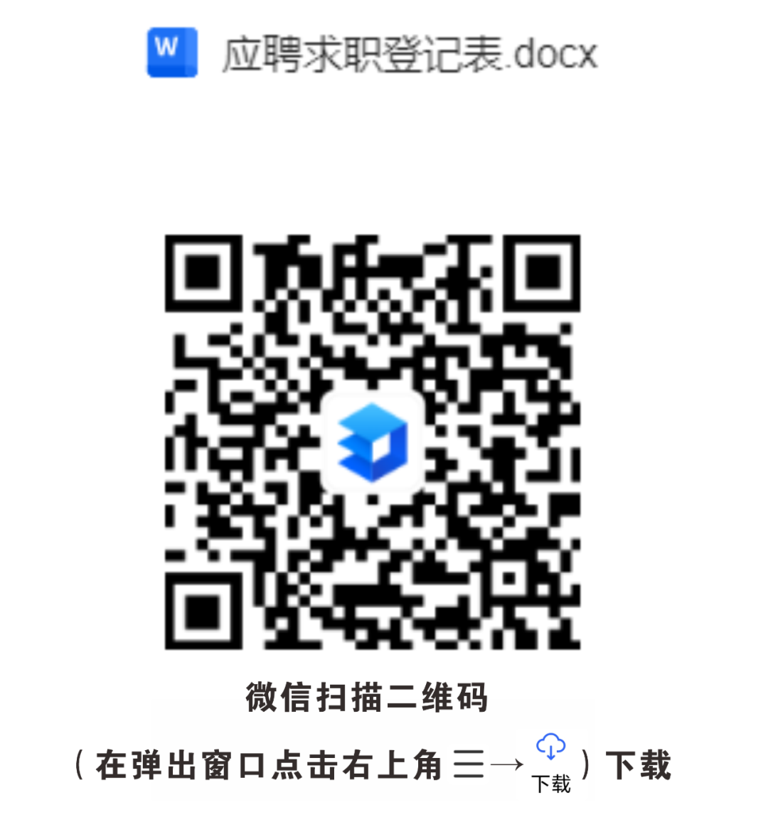 掃描二維碼下載報名表填報,以“應(yīng)聘崗位+姓名+專業(yè)”命名發(fā)送至電子郵箱tyxyyrsk@126.com。